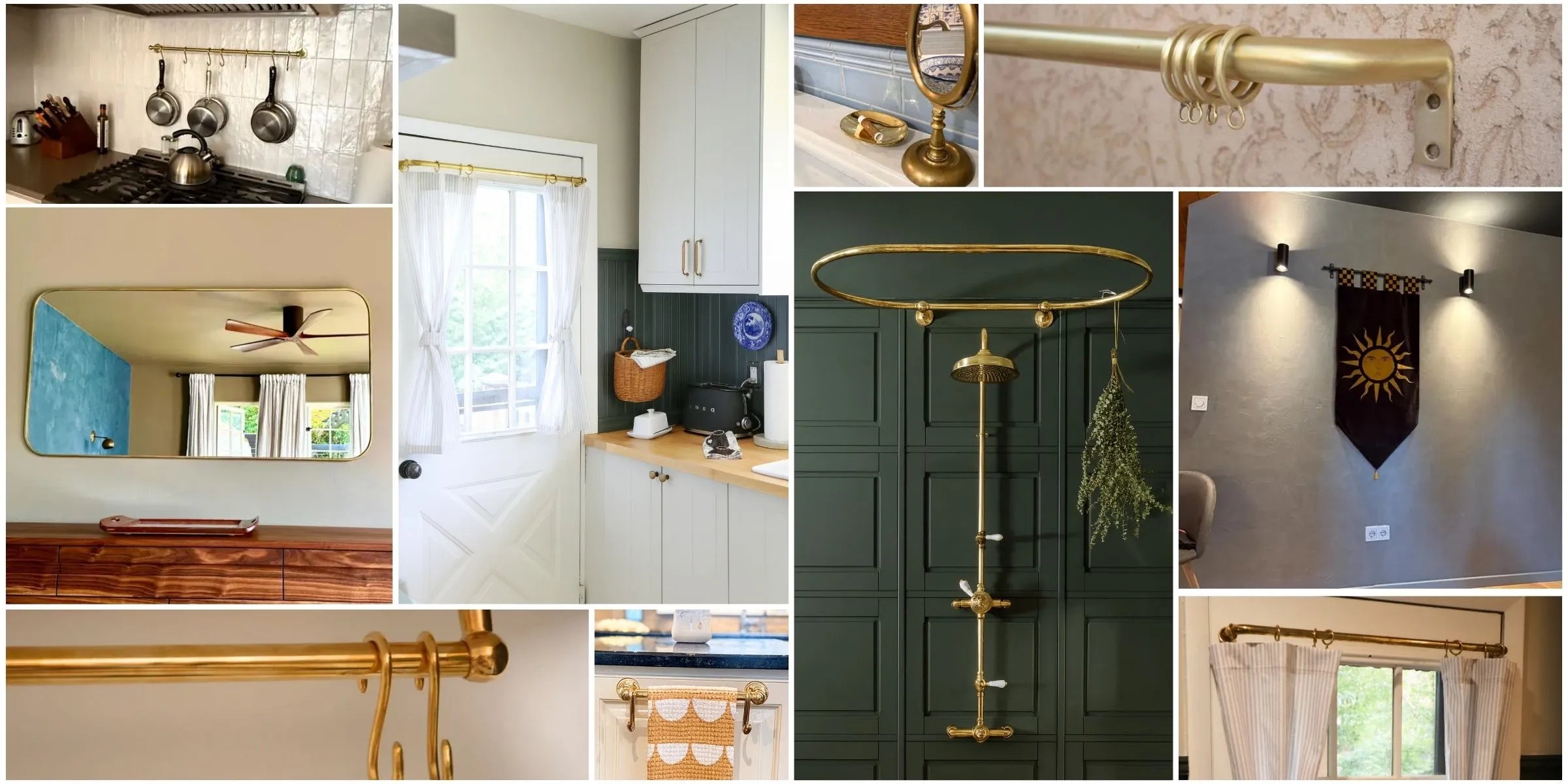 Unlacquered brass shower curtain rod ,Unlacquered Brass Bathroom Rail For Curtain